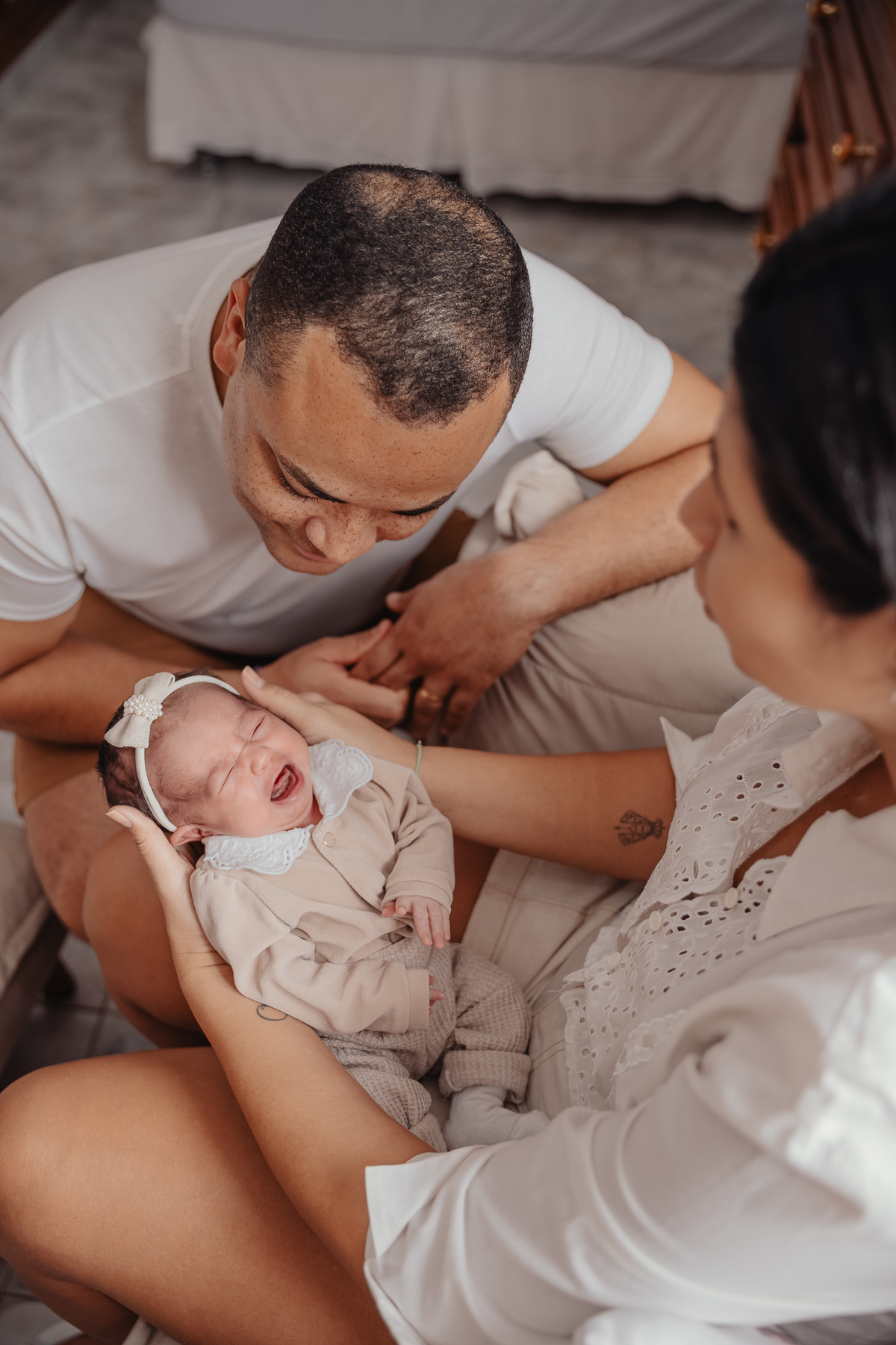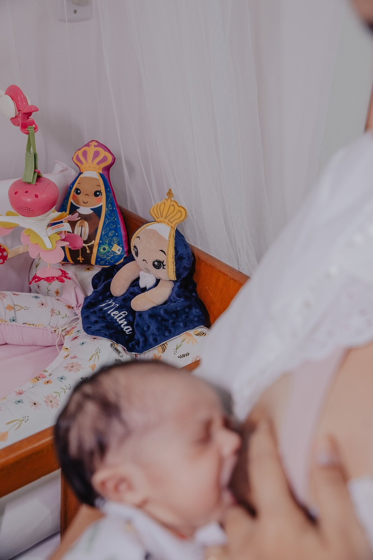O terceiro mês marcou o início dessa nova fase, e em breve seguimos juntos para registrar o sexto, o nono e o décimo primeiro mês dessa menininha "conversada" (dona de um podcast, como diz seu papai), cheia de expressão e de afeto. A “abelhinha” que a acompanha, a fé em Nossa Senhora Aparecida e esse jeito doce de conversar com o mundo fazem parte da história que construímos em imagens.