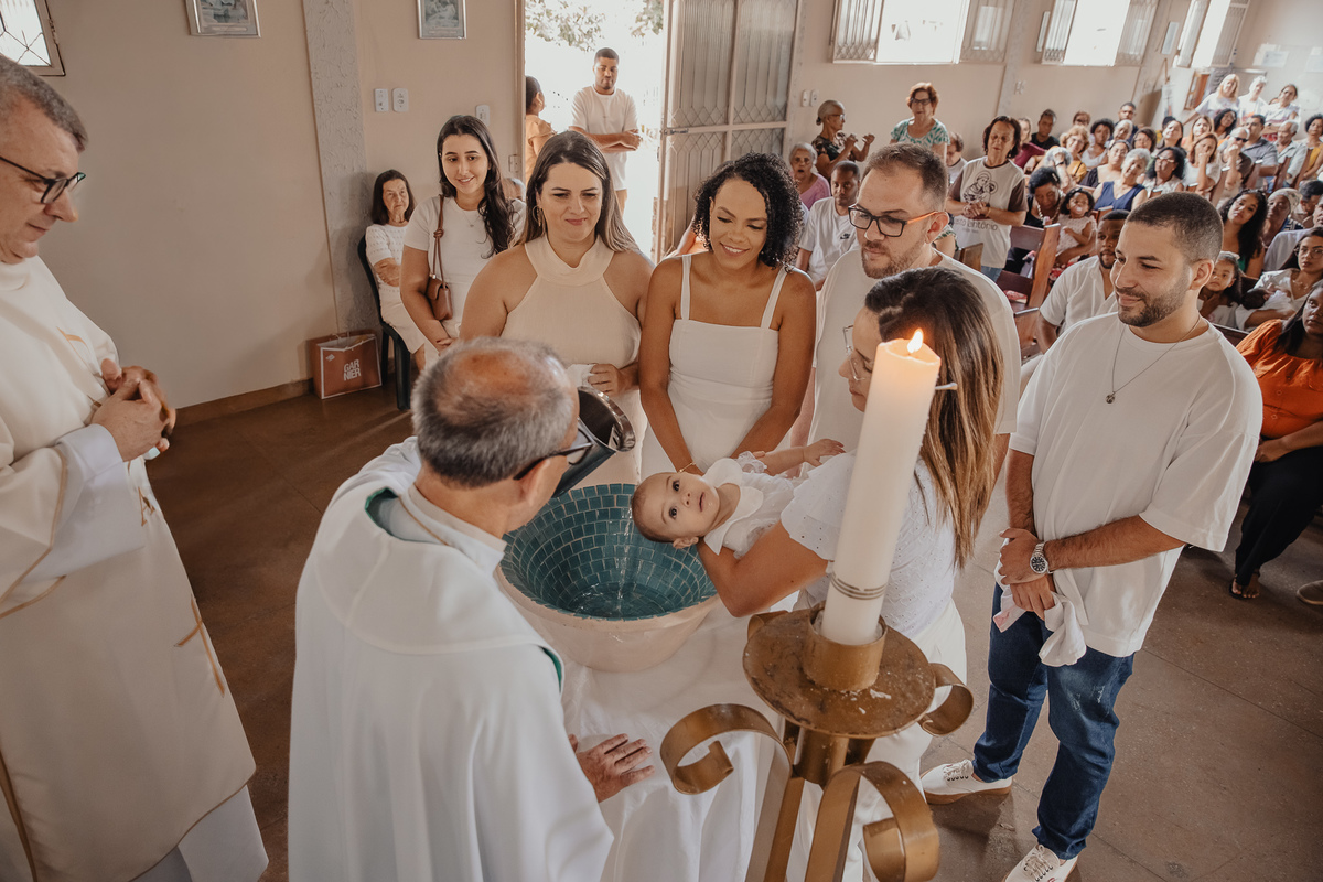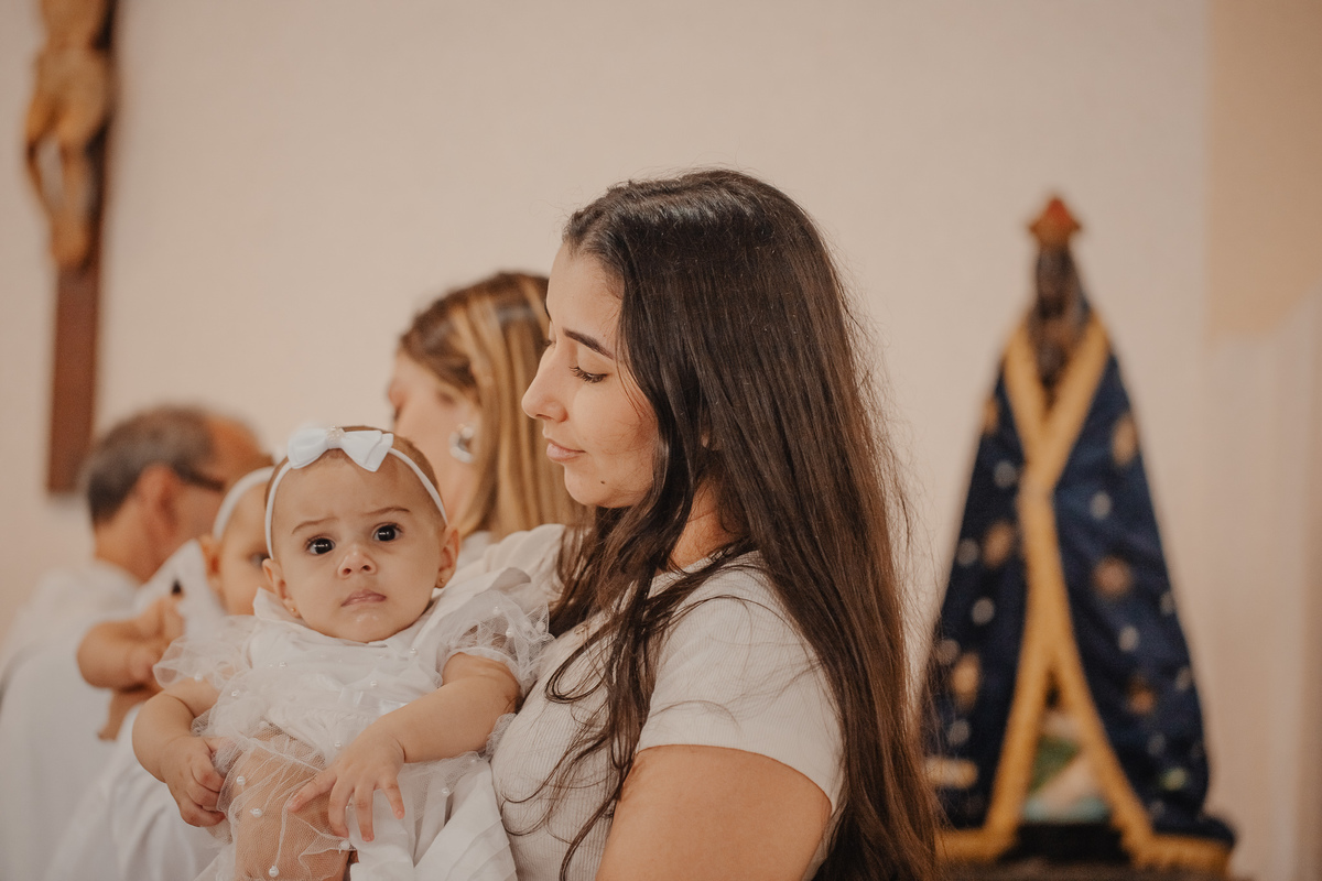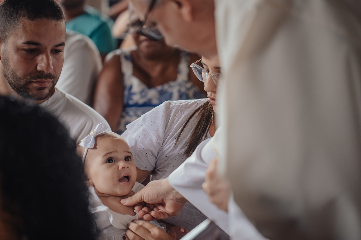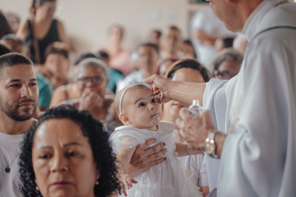 Estive presente quando ela ainda era espera no ventre da Brunielle, acompanhei seus primeiros dias de vida no newborn e, agora, tive a honra de registrar esse momento tão sagrado: o seu batizado.