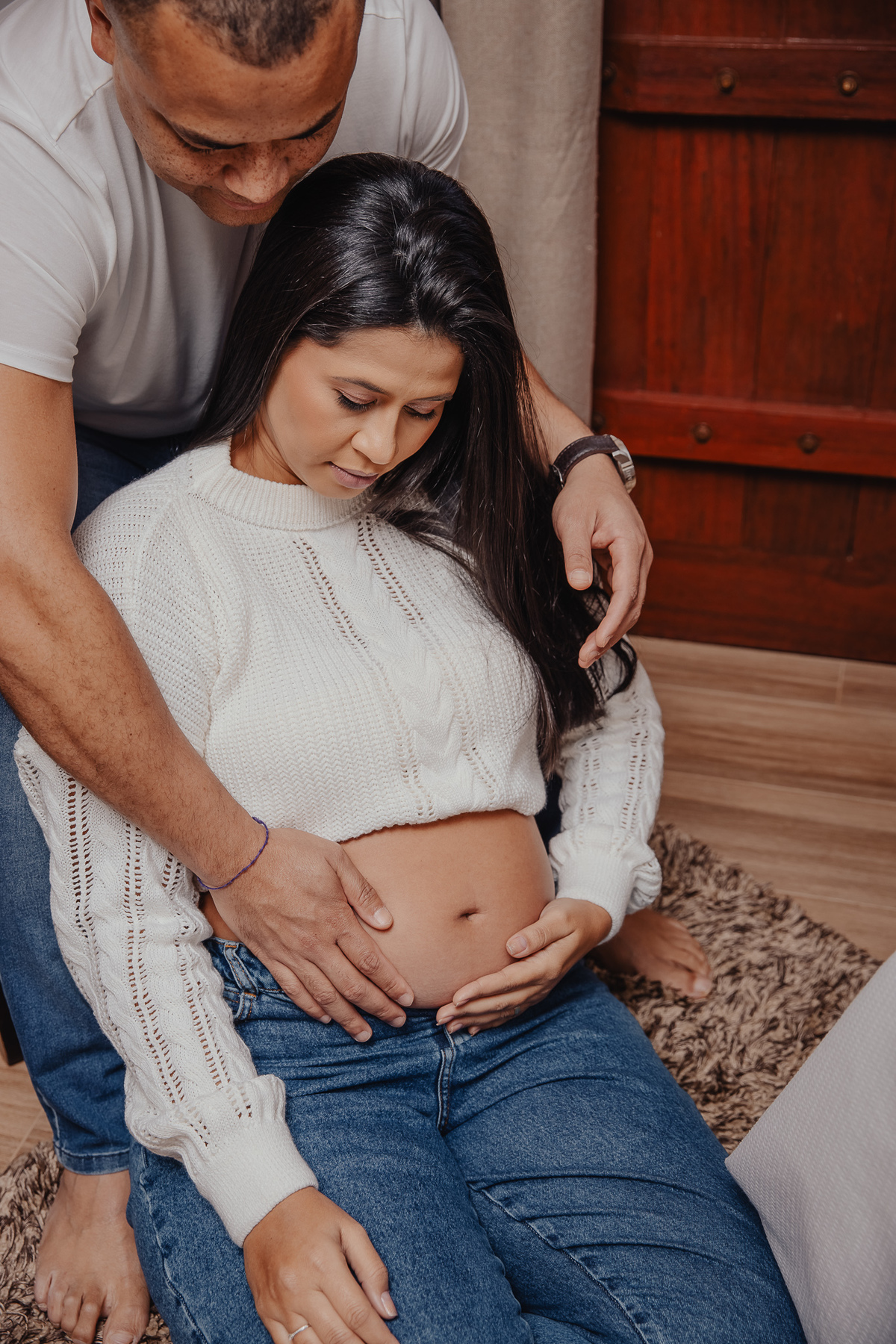 Ele, apaixonado pela esposa e já encantado pela sua menininha que está para chegar.